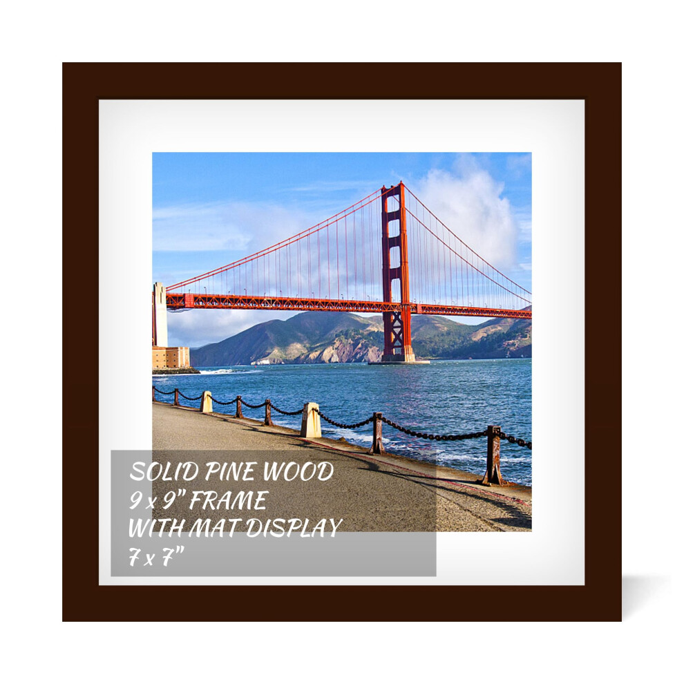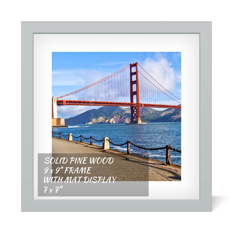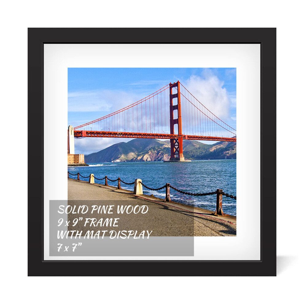 9x9 inch Wood Picture Frame for Wall Hanging or Tabletop Square Photo Frames with 1 Mats Display 7x7 inch for Baby Scan Poster Walls Decoration Annive