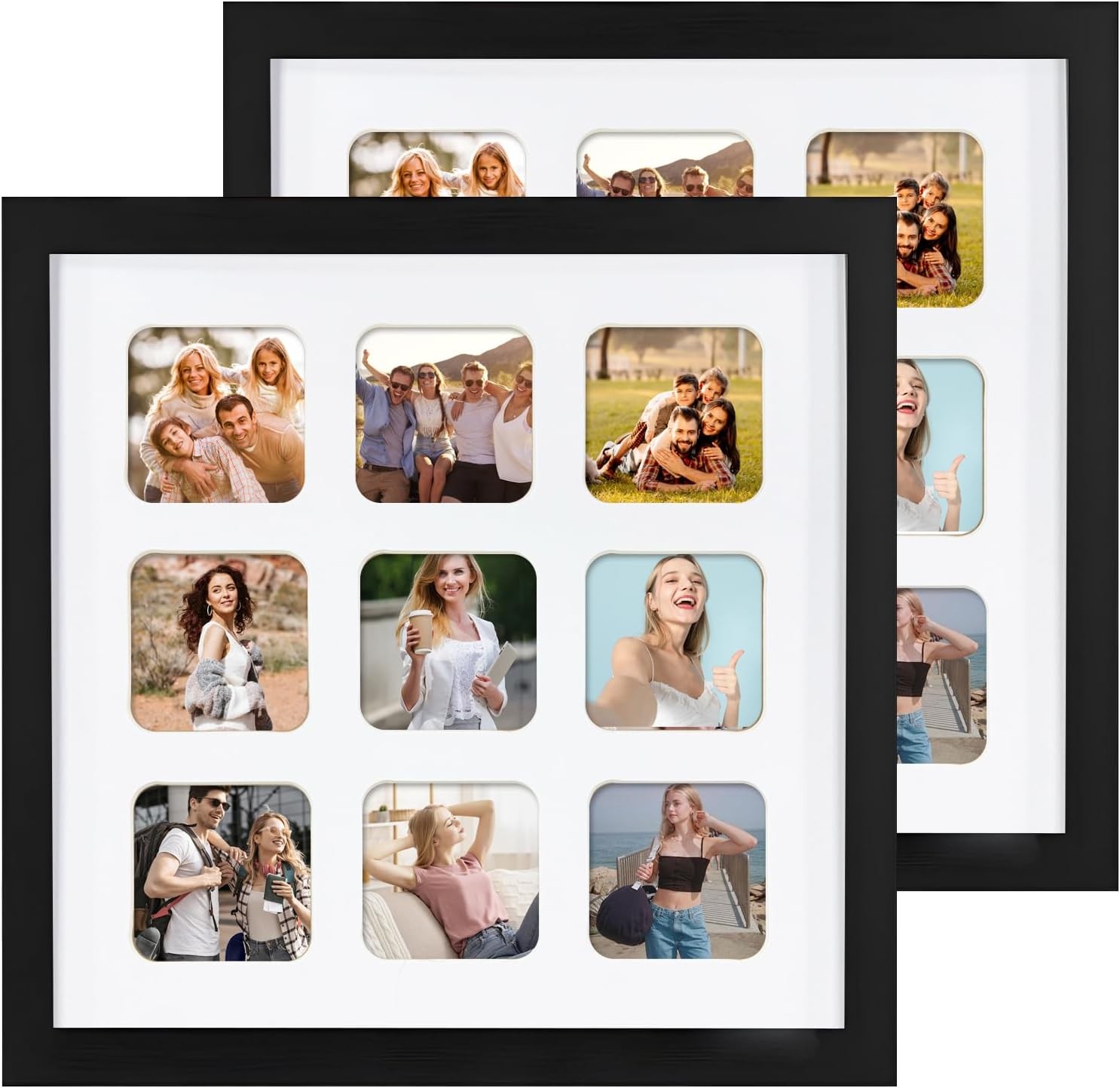 2 Pack 10 Inch Black Square Multi Aperture Photo Frames,Wall & Tabletop Displ