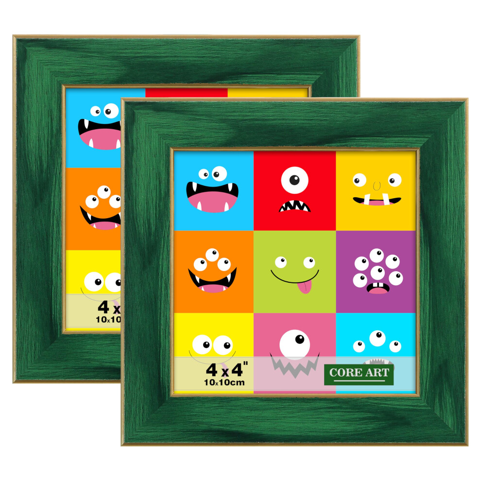 CORE ART 4x4 Picture Frames Green Square Photo Frames Set of 2 Square Colorful Frame with HD Plexiglass Wall or Tabletop Display