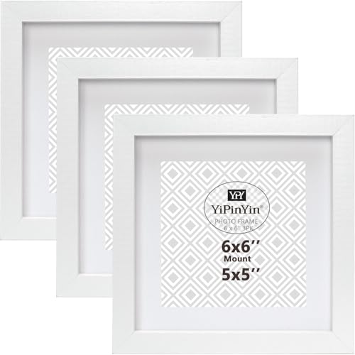 6 X 6 '' (15x15cm) Square White Photo Frames Set Of 3 with mount for 5x5 photo,Boxed Garllery 10x10cm Picture Frame 3 Pack, 15x15cm Square frames With Perspex Window For Wallmounted & Desk Top