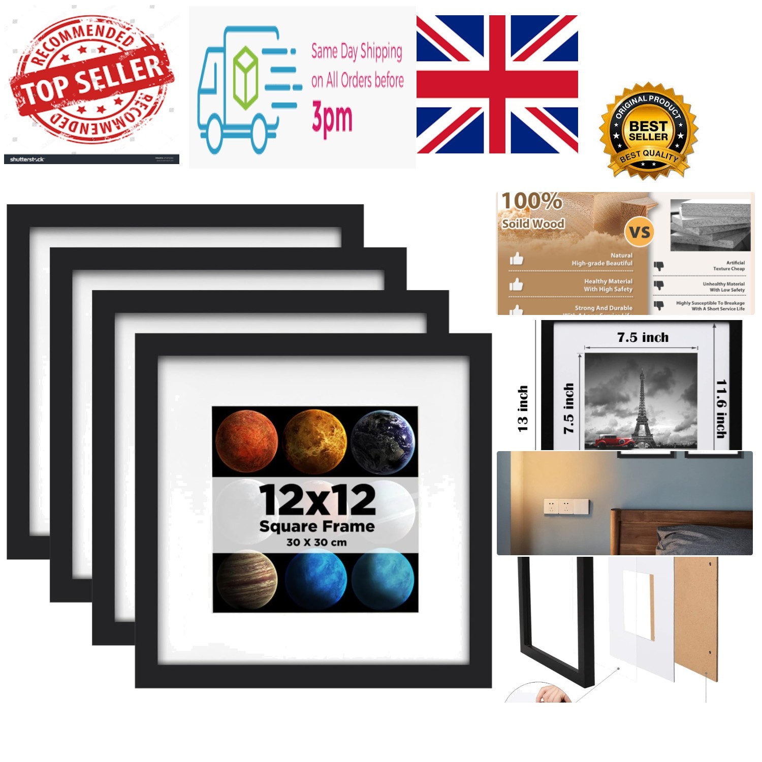 Stylish 12x12 Square Photo Frames - Durable Black Wood with Acrylic Glass