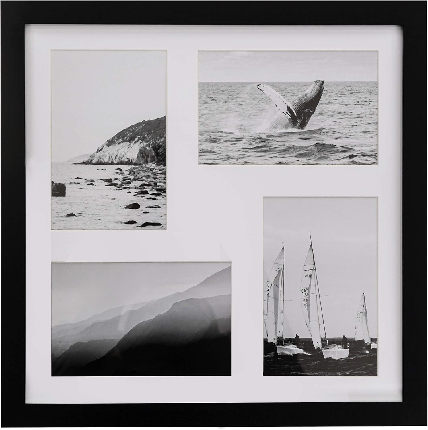 Black 12x12” Square Picture Frame Multi Aperture with White Mount that