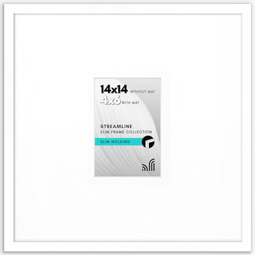 Americanflat 14x14 White Square Picture Frame with Plexiglass Cover - Thin Border Design, Easy Load Mechanism, Wall Mount