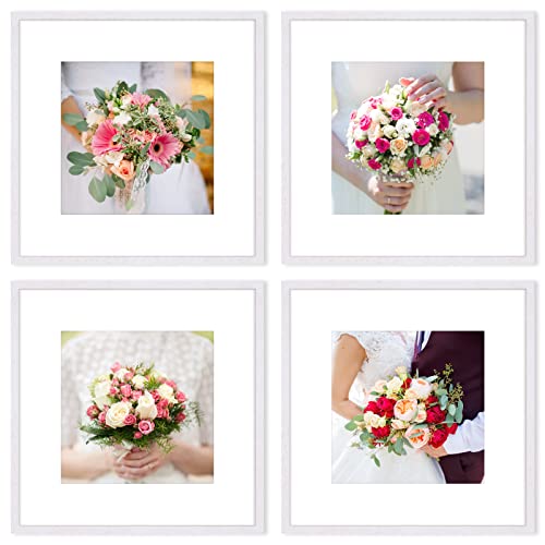 White Wood Square Picture Photo Frame,Compatible with 30x30cm without mat and 20x20cm with mat images for Wall Mounting In Living Room, Bedroom,Gallery,Set of 4