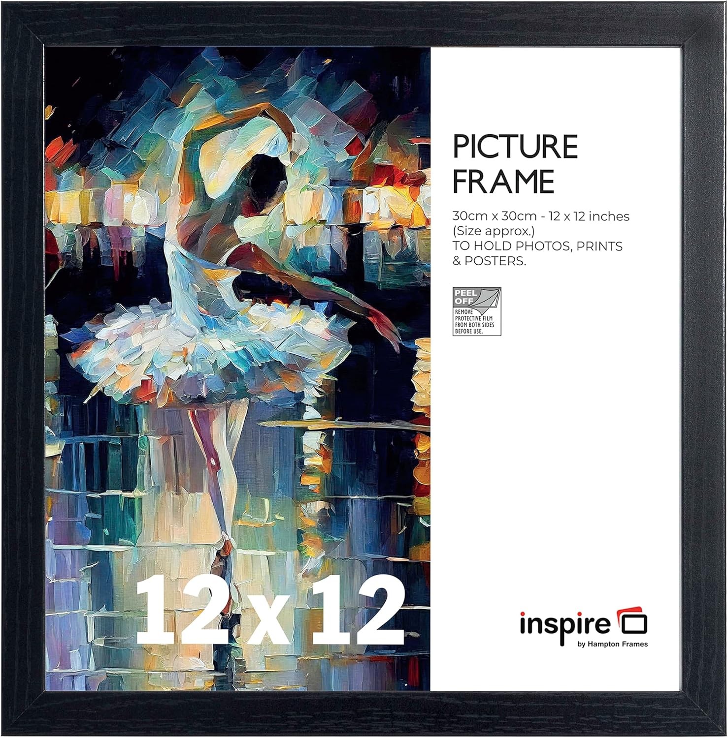 Inspire by Hampton Square Picture Frame 30x30cm Black Pack of 1, Acrylic Front, MDF Back, Drop-In Design, Wall Mount, Wood Effect, For Easy Photo Display and Modern Home Décor