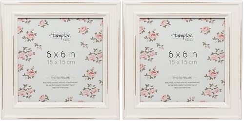 Hampton Frames PALOMA Distressed Square Picture Photo Frame White 6x6 (15x15cm) PAL301966W (Pack of 2)
