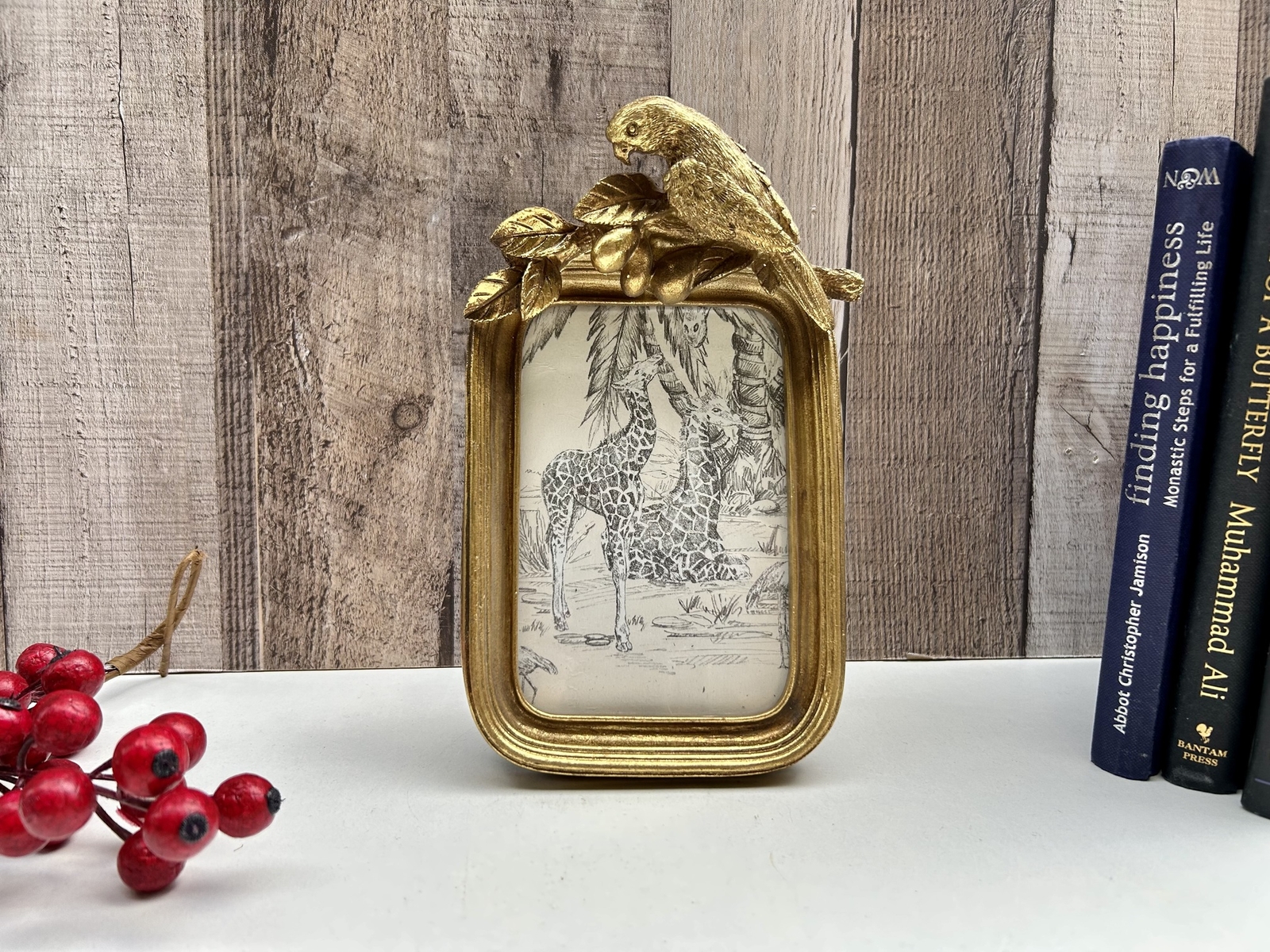 Square Photo Picture Frame - Gold Parrot Bird Tropical Design - 10 x 15cm