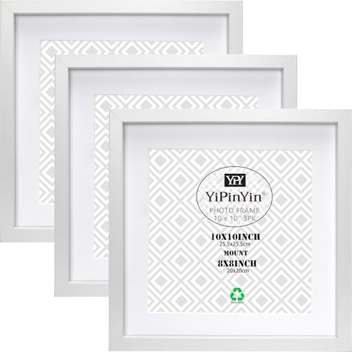 White 10x10'' Square Picture Frame Set Of 3,25 x25cm Picture Frame with Mount Displayed 8×8" Photo,Garllery Picture Frame 8x8'' 3 Set Stylish Photo Frame For Wall Mounted & DeskTop
