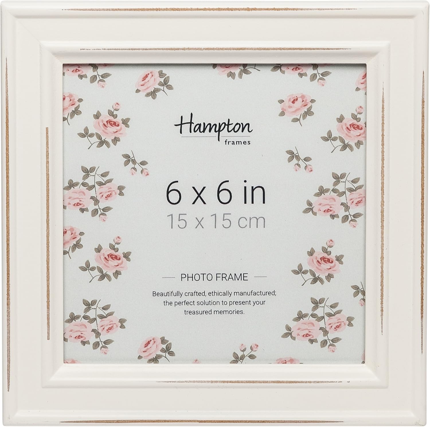 Hampton Frames PALOMA Distressed Square Picture Photo Frame White 6x6 (15x15cm)