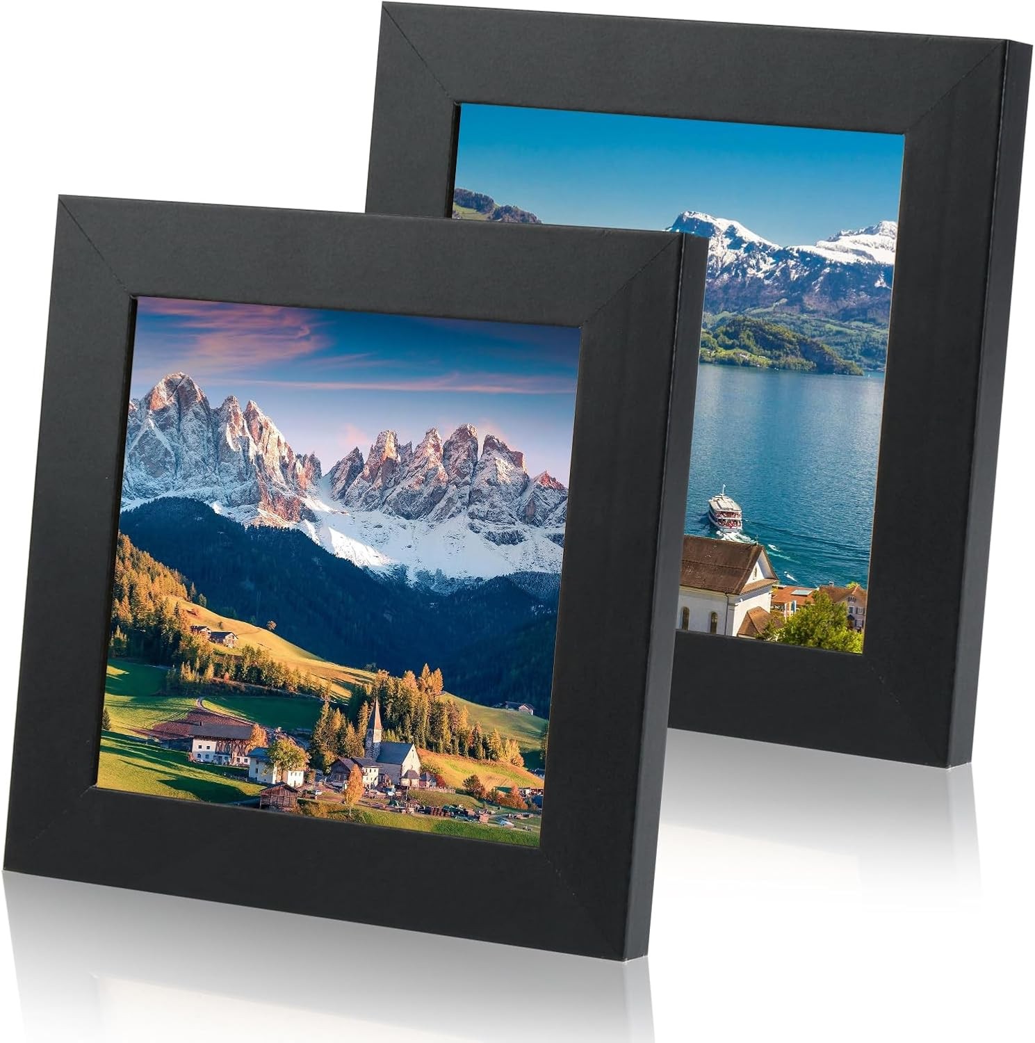 2Pcs 4x4''(10.2x 10.2cm) Square Photo Frame, Picture Frame Modern Wooden Square