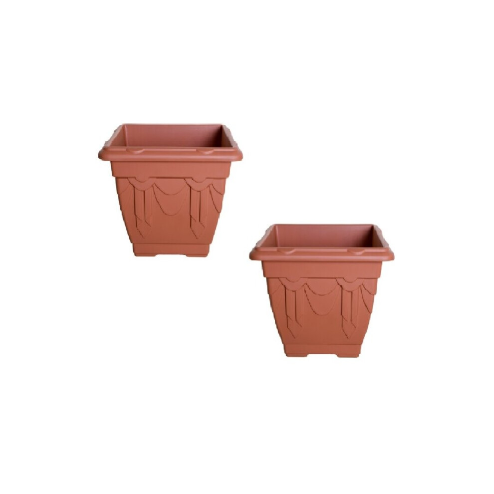 Set of 2 Terracotta Venetian Square Plastic Planters, 30cm â Weatherproof, Indoor/Outdoor, 10L