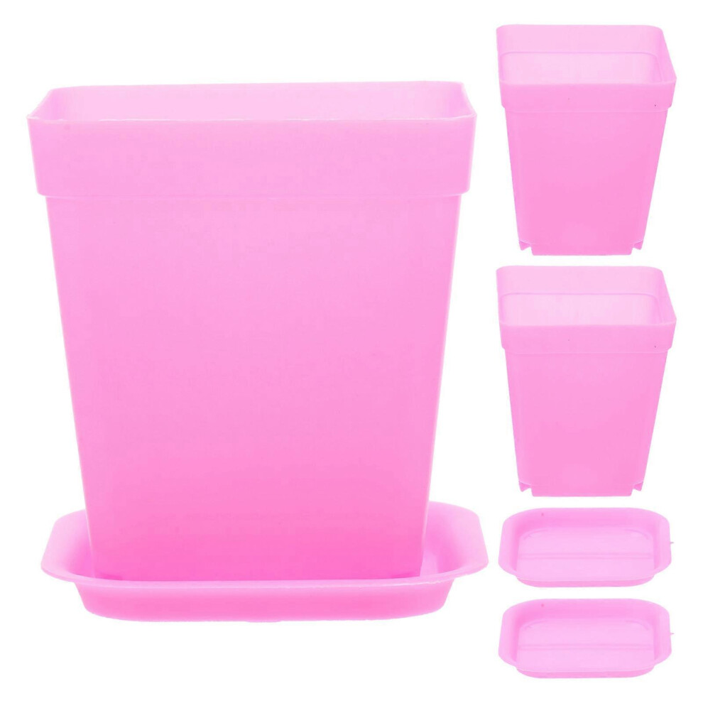 (As show, One size) 6pcs Thicken Flower Pots Square Planters Pot Trays Plastic Pots Creative Small Square Pots for Succulent Plants(each 3 of Small Pi