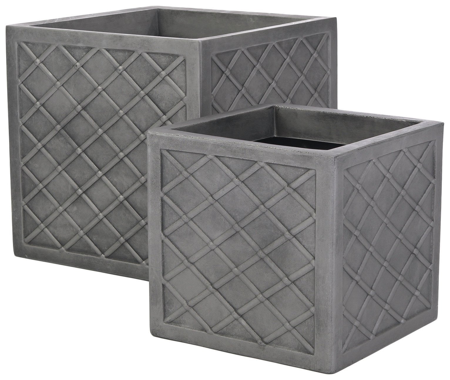 Charles Bentley Pair of Trojan Square Granite Garden Planters - Grey, Grey