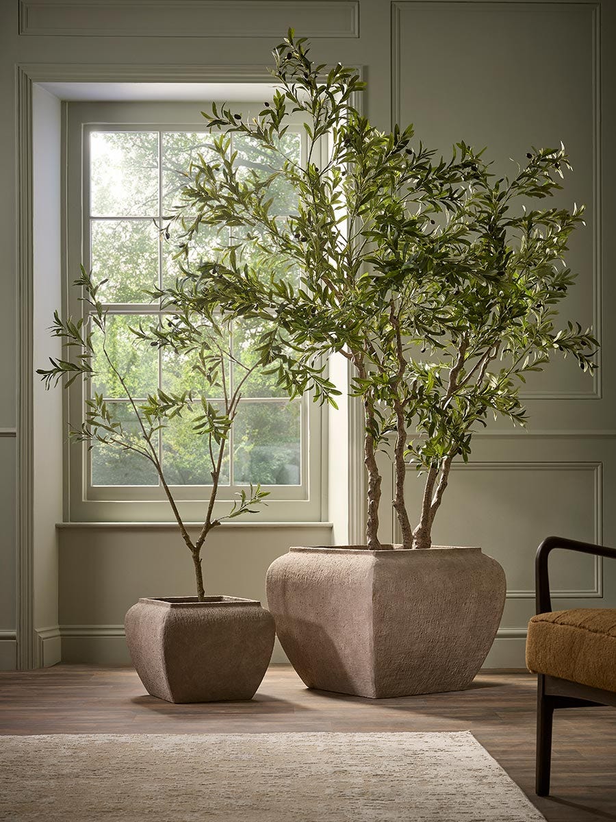 Pair of Tall Trojan Square Granite Planters (Dia. 40cm) Pots