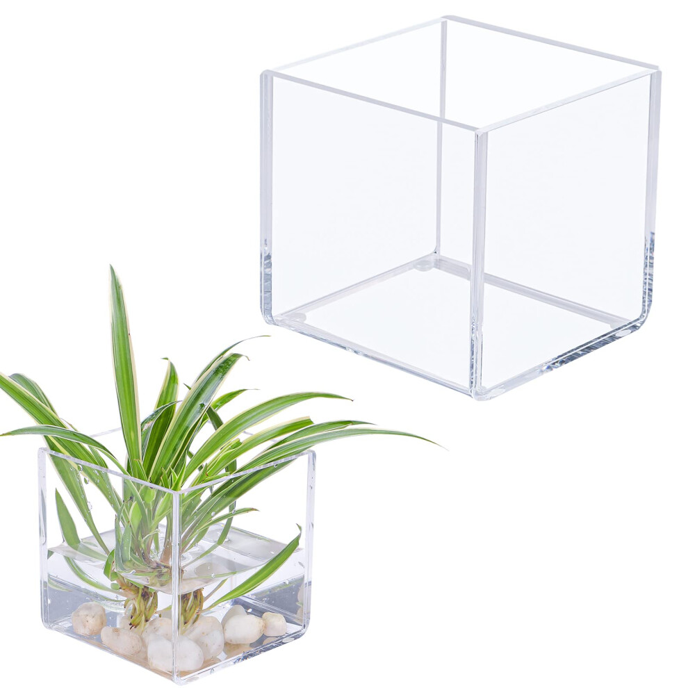 Kamehame Clear Vase 2 Pcs Acrylic Vase 4""x4""x4"" Succulent Pots Planters Square Cube Vases for Centerpieces Flower Vase for Home Office Wedding F