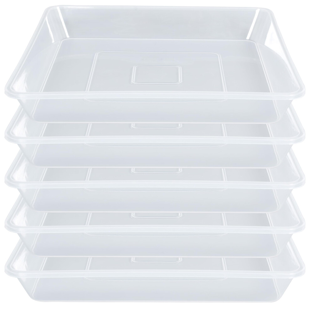 LWALRS Square Plant Saucer 14 Inch 5 Pack Sturdy Clear Plastic Flower Plant Pot Saucer Square Planters for Indoors and Outdoor