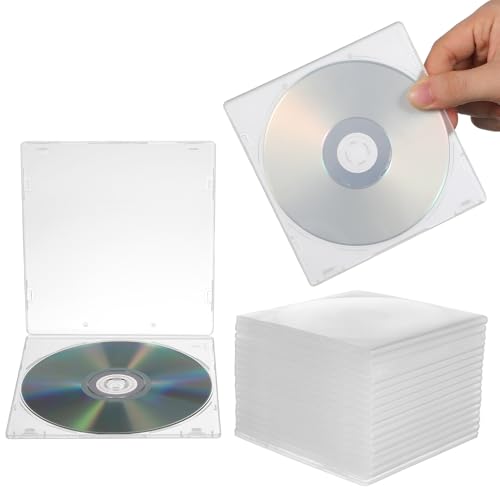 OSALADI 20pcs Ultra-thin Single CD Dvd Case Set with Pp Material and Insert Sleeve, Square Media Storage Boxes for Disc Protection and Display