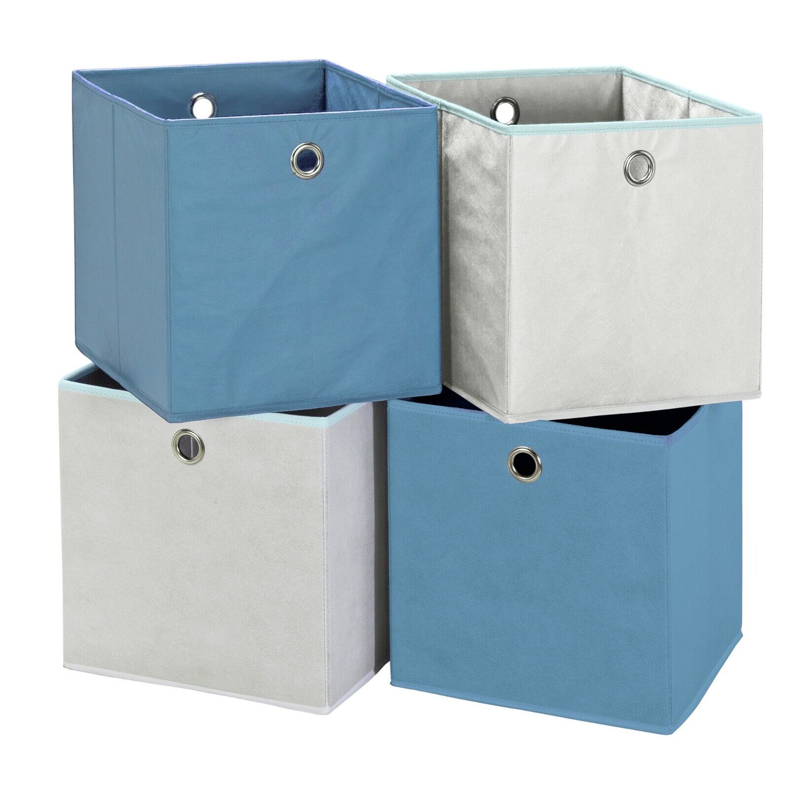 Set of 4 28cm / 11" Square Storage Boxes - Blue & White