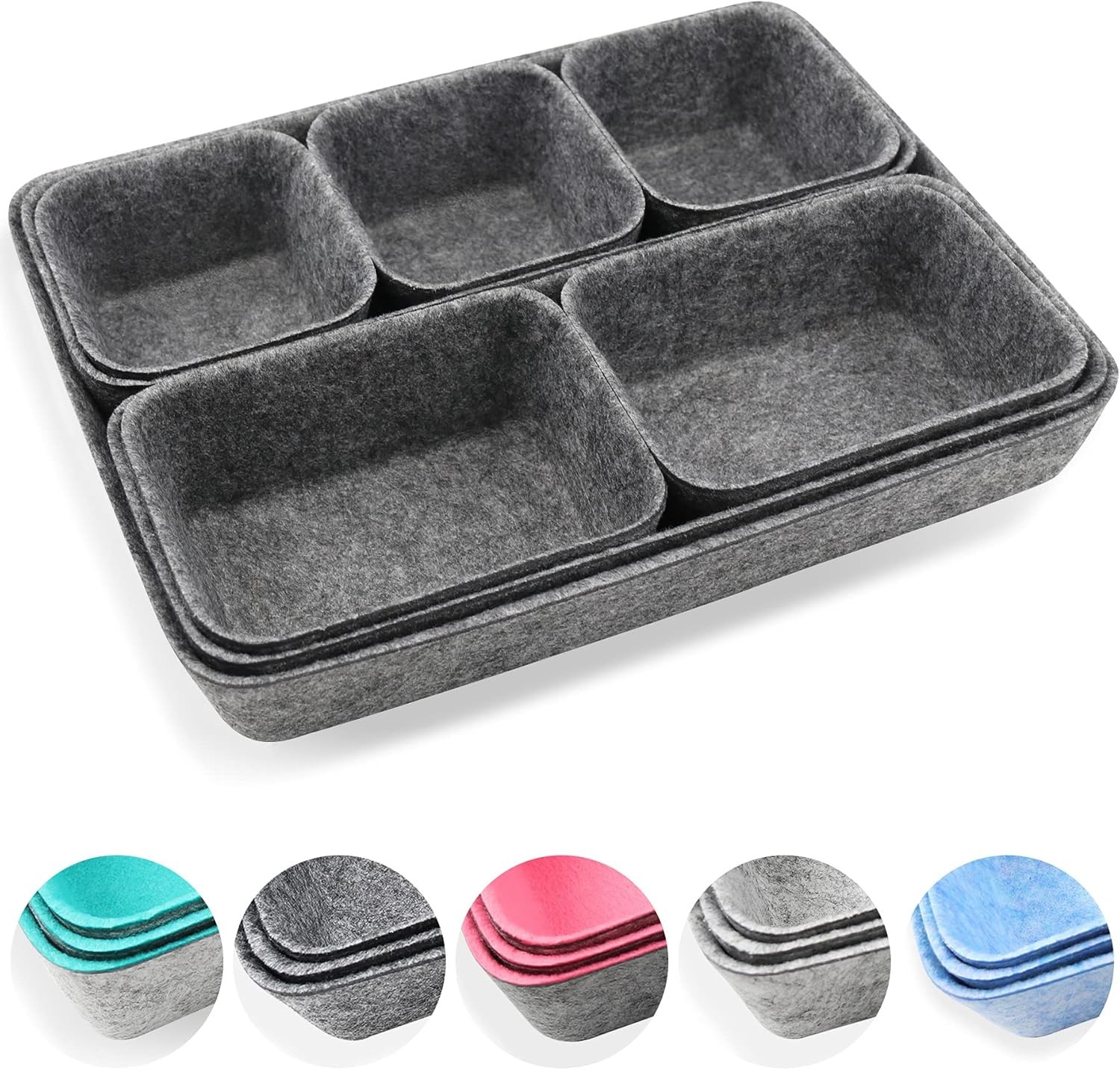 Newthinking 8 Pack Felt Drawer Organiser Trays Square Storage Boxes Dark Gray