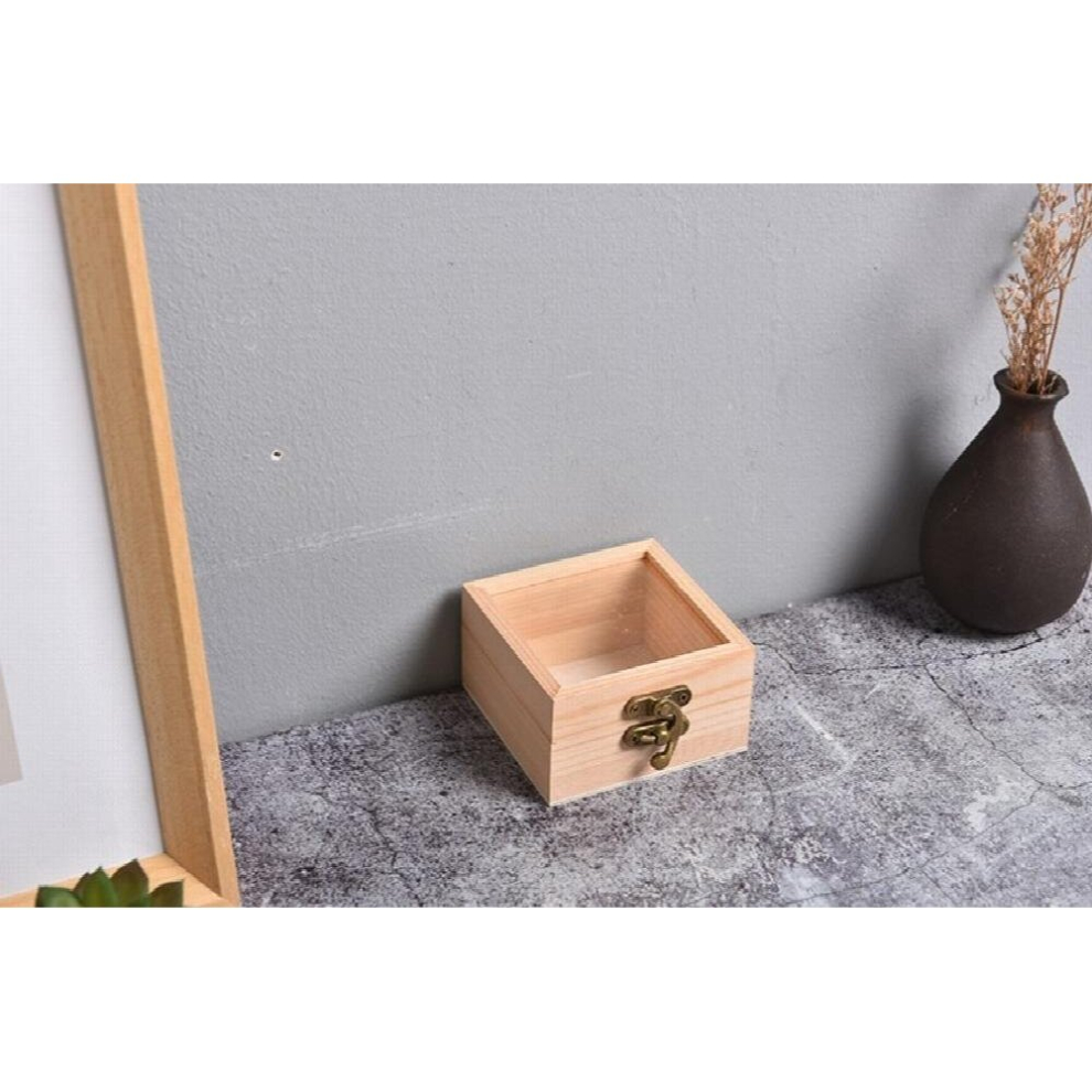 Wooden Square Hinged Storage Boxes Craft Gift Storage Container Dust Jewelry Box Wodden Leather Storage Organizer Earring Holder