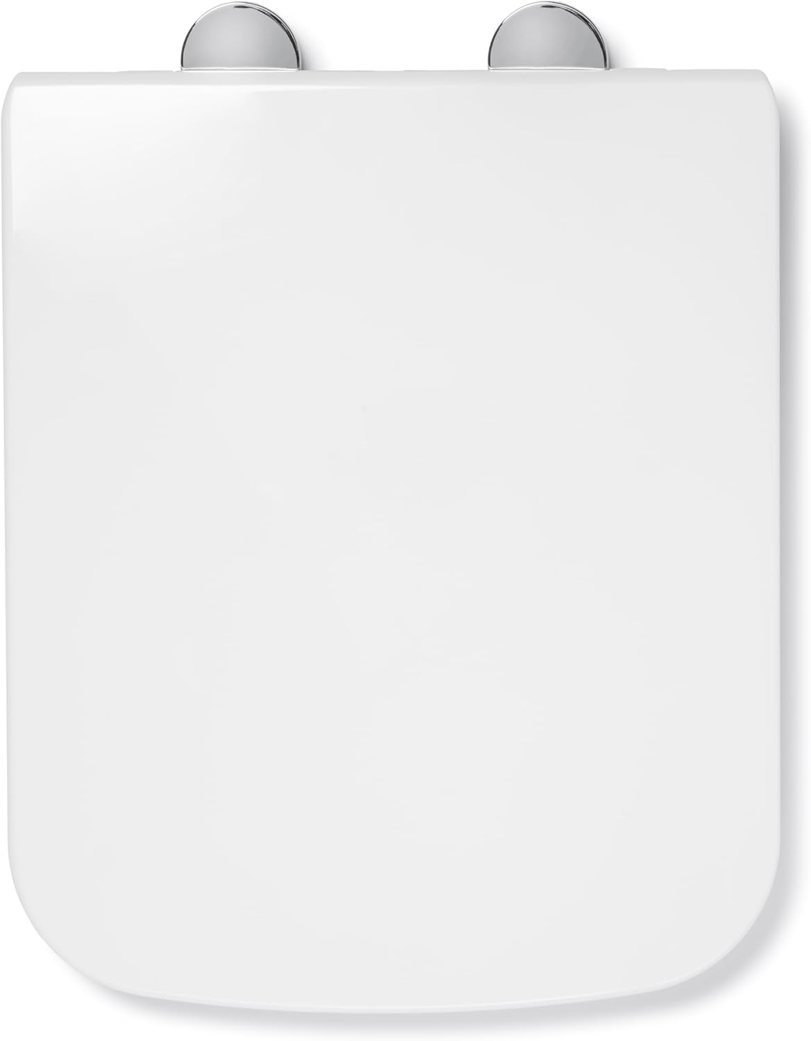 SAMODRA Square Toilet Seat Soft Close White, Quick Release for Easy Clean, Simple Top Fixing,Standard Toilet Lid with Adjustable Hinges