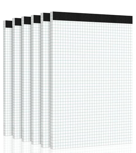 Roneky Graph Paper Pads, 6 Pack Graph Pads, 4x4 Grid Paper, 30 Sheets Squared Paper Notebook A4, A4 Lined Grid Notebook for Home, Office, School