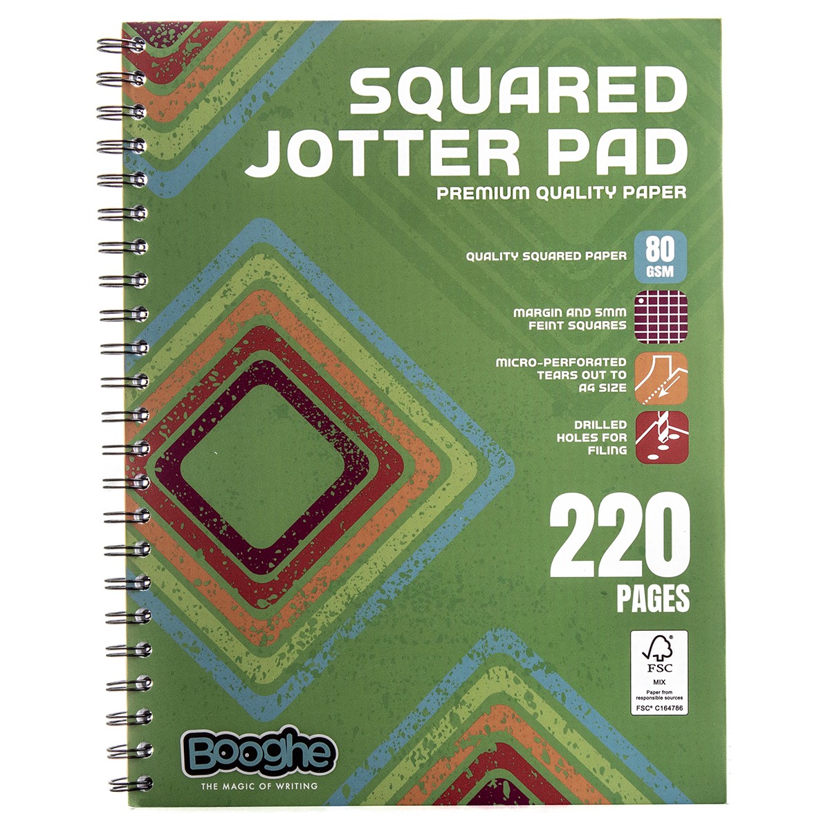 Booghe A4 Squared Jotter Pad 220 Pages Quality Squared Paper Holes for Filing