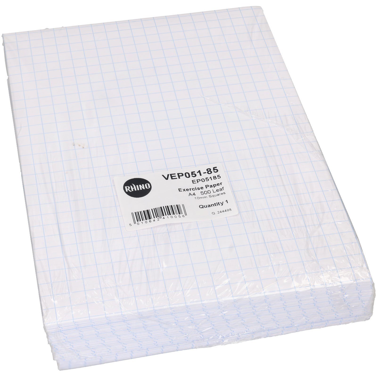 RHINO A4 Loose Leaf Squared Paper, 500 Sheets / 1000 Page, 10mm Squared Paper, Non Hole Punched, School & Office Stationery Supplies