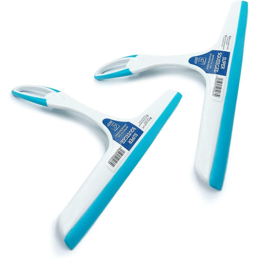 Pack of 2 Window Squeegee Glass Cleaning Wiper – Multipurpose Glass Squeegee Window Cleaner for Cars, Bathroom and Shower Squeegee with Plastic Body, Rubber Blade, and Easy Grip Handle