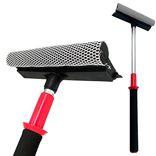 2 in 1 Telescopic Window Squeegee with Durable Squeegee Blade and Sponge Attachment - Window Cleaning Kit Perfect to Use as Shower Cleaner Squeegee, Window Cleaner & Car Window Squeegee