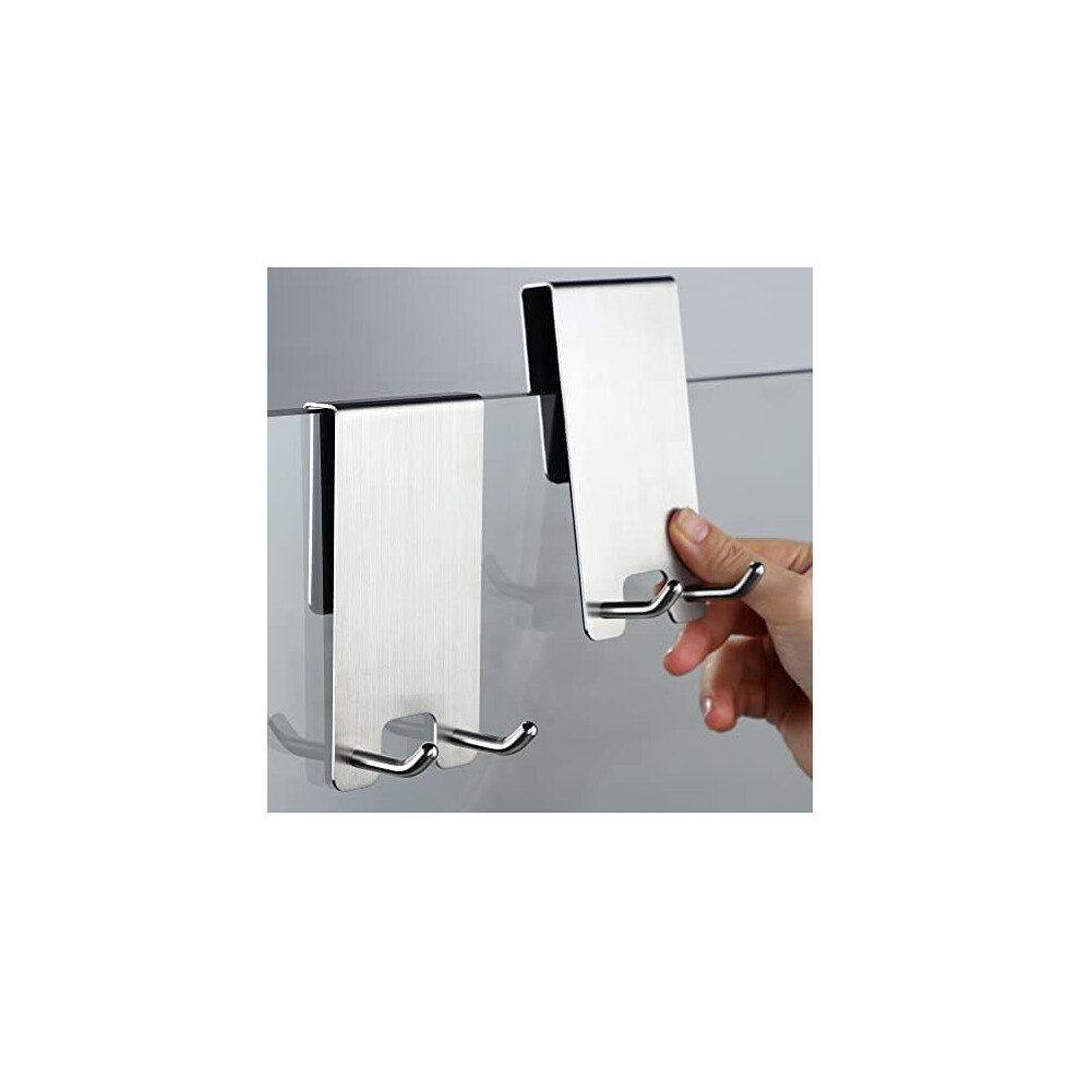 Over The Door Hooks - Stainless Steel Shower Towel Hooks, Squeegee Holder, Frameless Glass Shower Door, 2 Packs