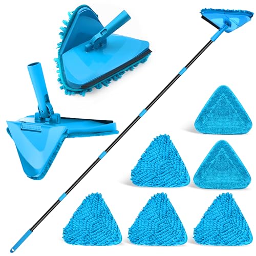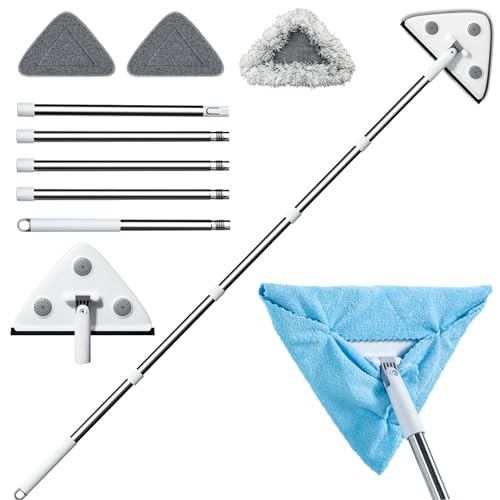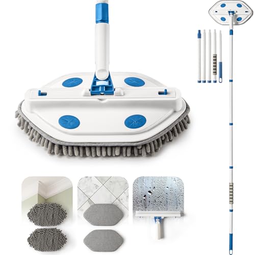 Keyohome 51 Inch Wall Cleaning Mop with Long Handle, 3-in-1 Ceiling Cleaning Tool Duster with Squeegee Lightweight Baseboard Flexible Triangle Mop Cleaner Tool Duster for Walls Windows Baseboard