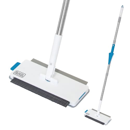 BLACK+DECKER BXFM64539E 7-in-1 Multifunctional Cleaning Mop with Sweeping Brush, Crevice Brush, Squeegee & Duster, Telescopic Pole, 360° Rotating Head, Stainless Steel, 33 x 11 x 135cm