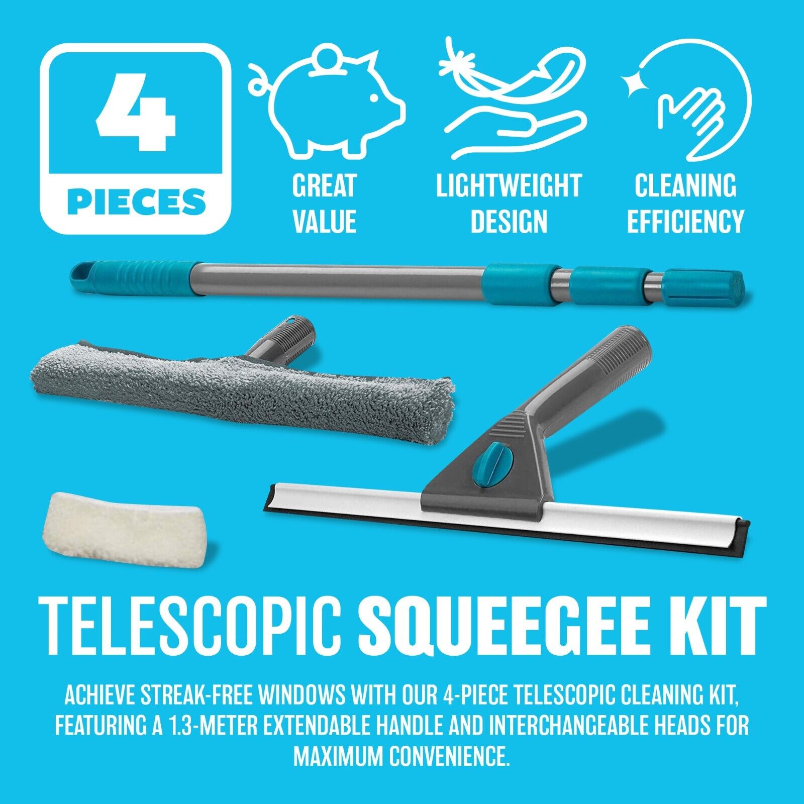 Window Cleaning Kit Telescopic Extendable Handle Soft Cleaner Mop Squeegee