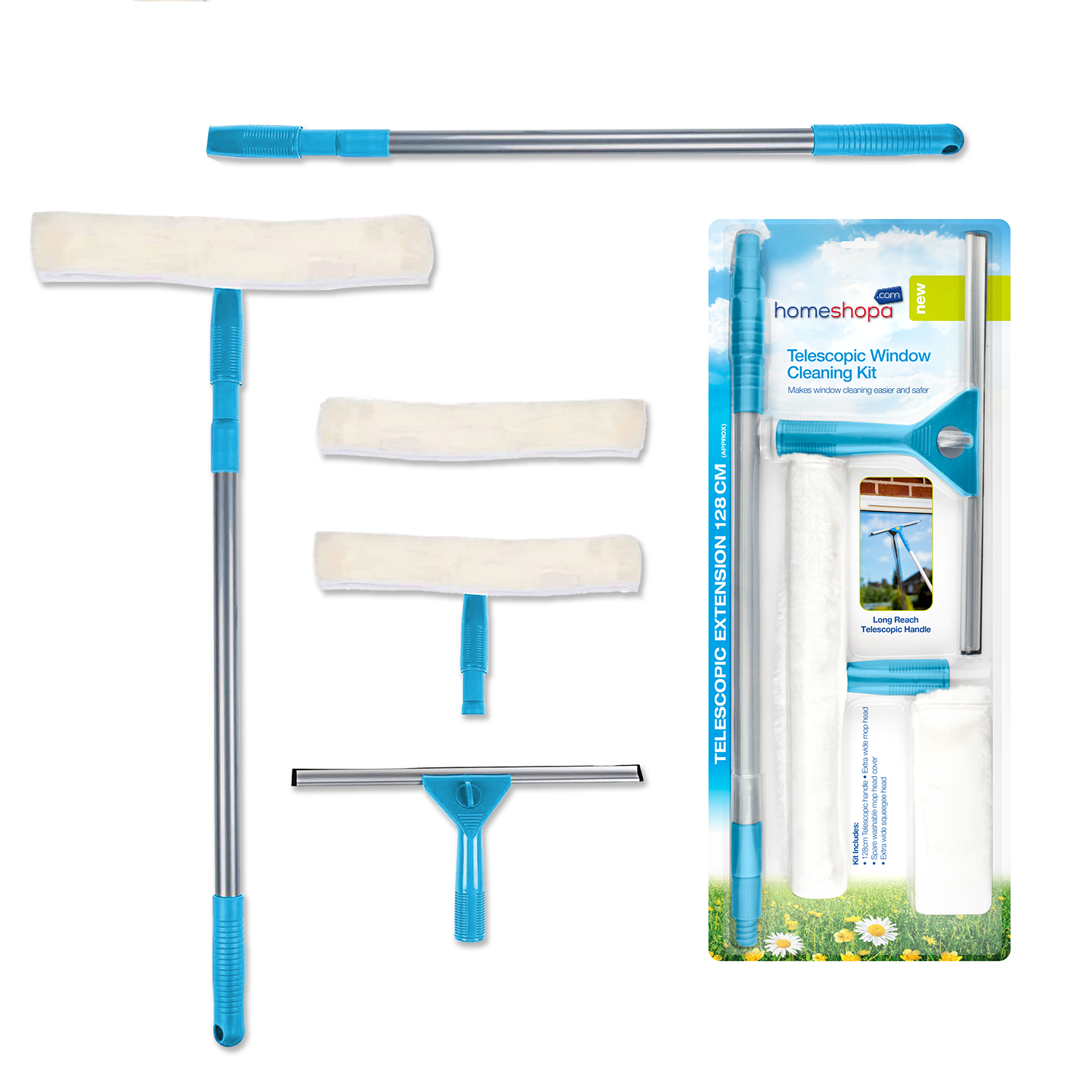 Pro Kleen Telescopic Window Cleaner Kit Cleaning Equipment Extendable Pole Soft Mop Squeegee Head Indoor Outdoor Glass