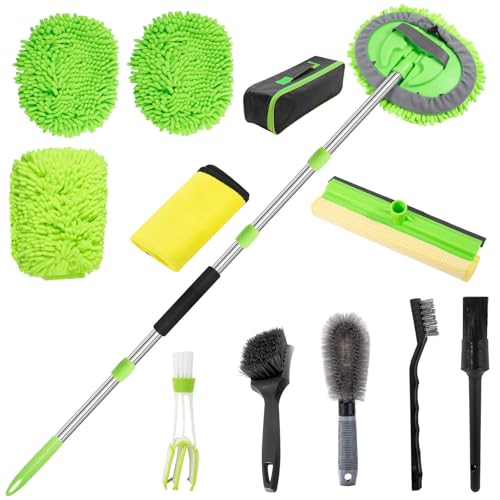 Wontolf 62'' Car Wash Brush with Long Handle Chenille Microfiber Car Wash Mop Mitt Car Washing Brush Cleaning Kit Windshield Window Squeegee Car Duster Microfiber Towels for Cars RV Truck Boat 9PCS