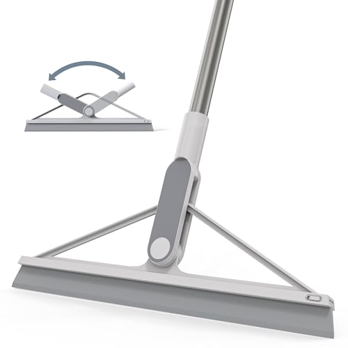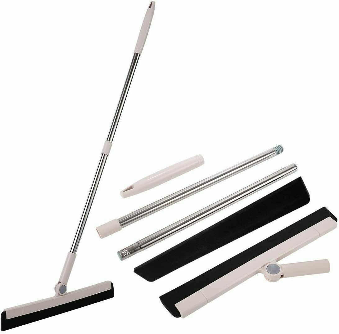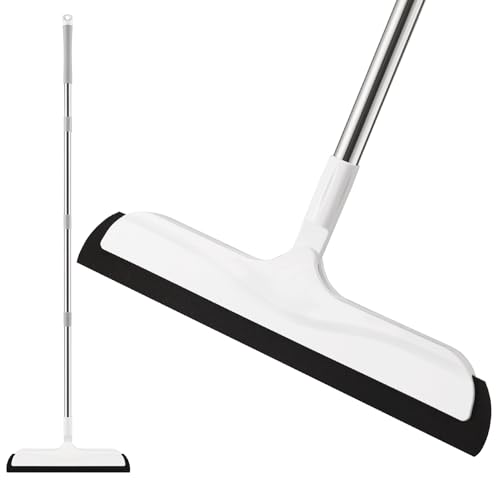 Silicone Floor Squeegee for Shower - Long Handle Water Wiper Scraper Mop Dust Clean Rubber Magic Broom Sweeping Water,Pet Hair Remover for Carpet,Wet Room,Window,Garage,Washroom