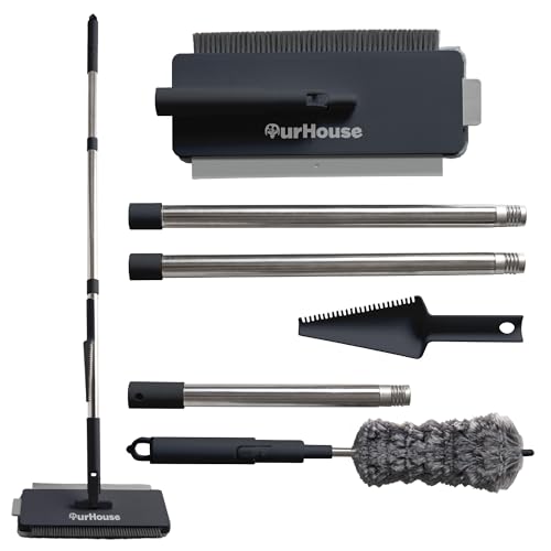 Foribyw 360° Rotatable Wall, Ceiling & Floor Cleaner Mop with 98in Extendable Stainless Steel Handle, Microfiber Pads, 6 Replacement Mops, 5 Poles, 3 Squeegee Strips