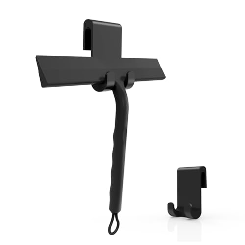 elzle Shower Squeegee, Window Squeegee, Black Shower Squeegee for Shower Doors with Hooks, Household for Bathroom, Cleaning Tile Walls, Car
