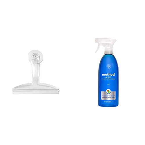 iDesign 22200 Shower Squeegee, Small Window Squeegee with Strong Suction Cup Made of Plastic & Method Glass Cleaner Spray, Mint, 828 ml (Pack of 1)