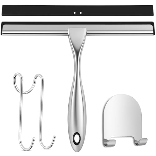 Shower Squeegee, 10 Inch Squeegee Shower Stainless Steel Window Squeegee for Glass Door Shower with Holder