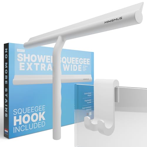 Minismus Silicone Shower Squeegee - Squeegee Cleaner Tool - Hook for Shower Doors - Screen Wiper Blade - Bathroom Scraper (White, 13'')