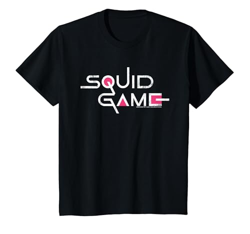 Squid Game Classic White Text Logo T-Shirt, Youth, Black, Large