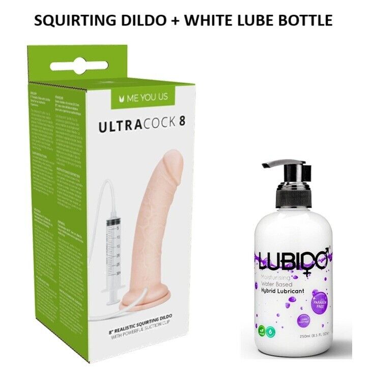 Ultra Cock Realistic 8 Inch Squirting Dildo Suction Cup WITH WHITE CREAMY LUBE