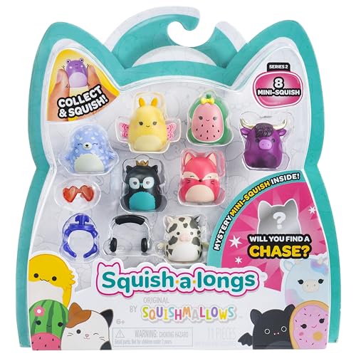 Squish-a-longs by Original Squishmallows 8 Pack - Series 1, Style 2 - (8) 1” Mini-Squish with 2 Accessories, Ring, and Collector’s Guide - Collect, Trade, & Play