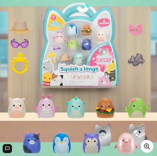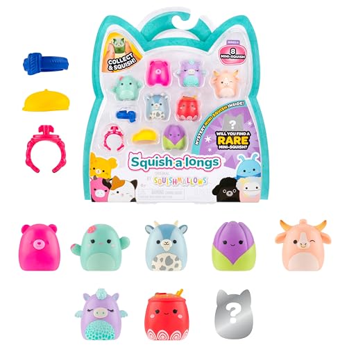 Squish-a-longs 8 Pack - 1” Mini-Squish with 2 Accessories, 1 Ring, and a Collector’s Guide - Collect, Trade, & Play