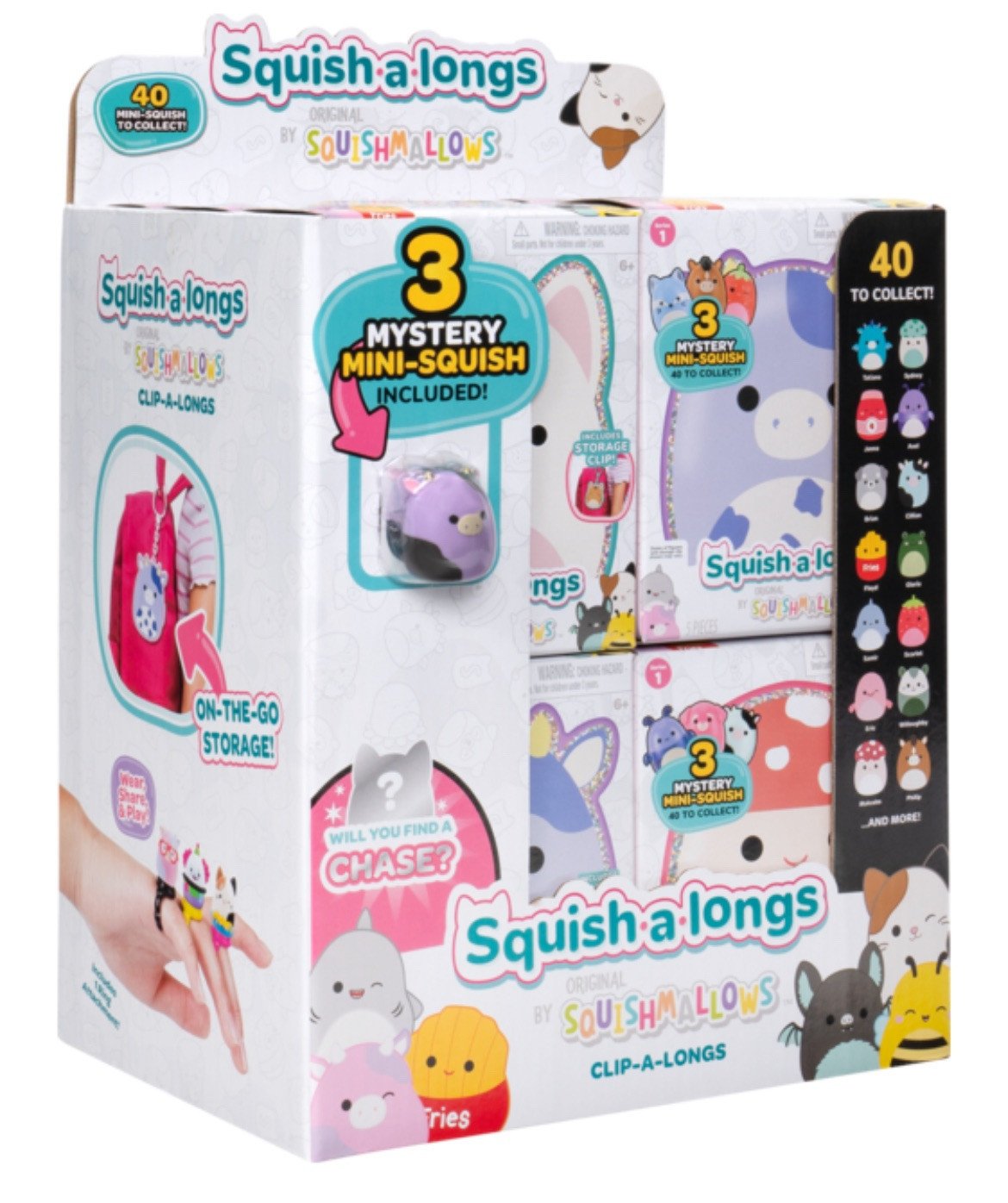 SQUISHMALLOWS SQUISH A LONGS CLIP & GO SERIES 1 - Pack Of 12 In Display Case
