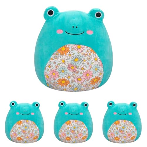 Squishmallows SQCR05383 7.5-Inch-Robert The Aqua Frog with Floral Belly, Multicolour (Pack of 4)