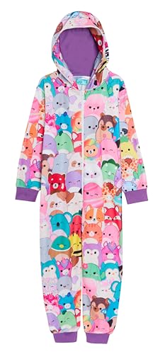 Squishmallows Girls Onesie with Hood Warm Fleece All in One Hooded Squish Squad Pyjamas Kids Fleece Pjs Loungewear 9-10 Years Multi