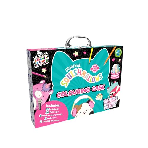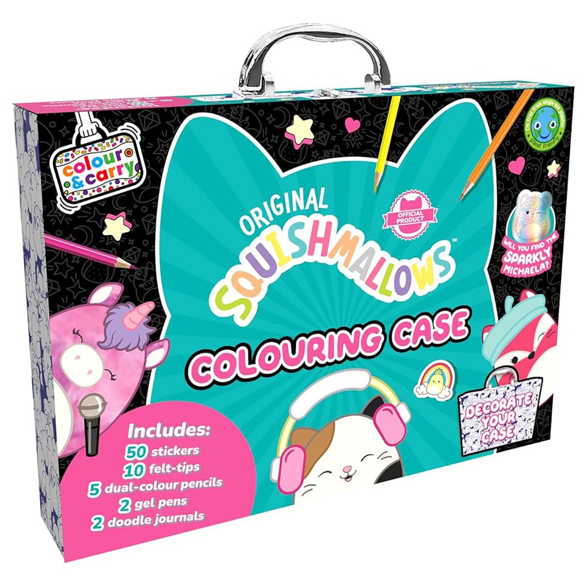 Bookoli - Original Squishmallows Colouring Case - Ages 6 & Above - Perfect for Squishmallow Fans - 2 Books Plus 12 Pens, Pencils and Stickers